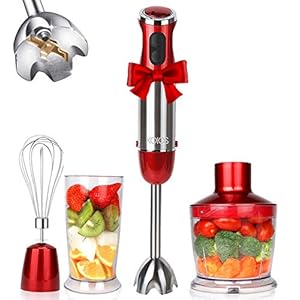 KOIOS 5-in-1 Hand Immersion Blender, 1000W 12 Speed Handheld Blender Stick with Copper Motor Stainless Steel Blade, 600ml Mixing Beaker,500ml Food Processor, Whisk, Milk Frother, Non-BPA, Red