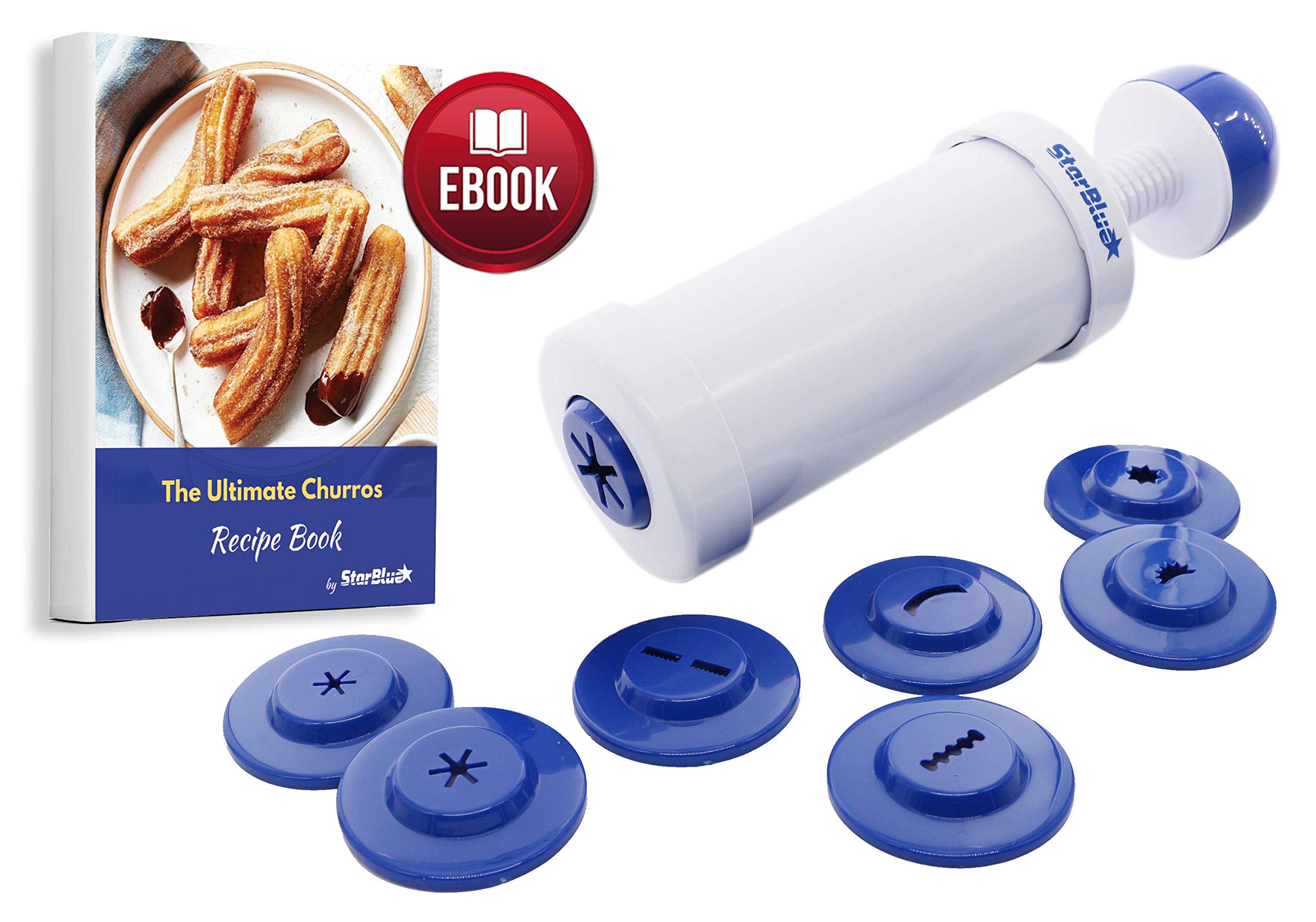 StarBlue Churrera Churro Maker with FREE Recipe e-Book – Easy Piping Nozzle Tool for Deep Fry Churro in 8 Difference Shapes