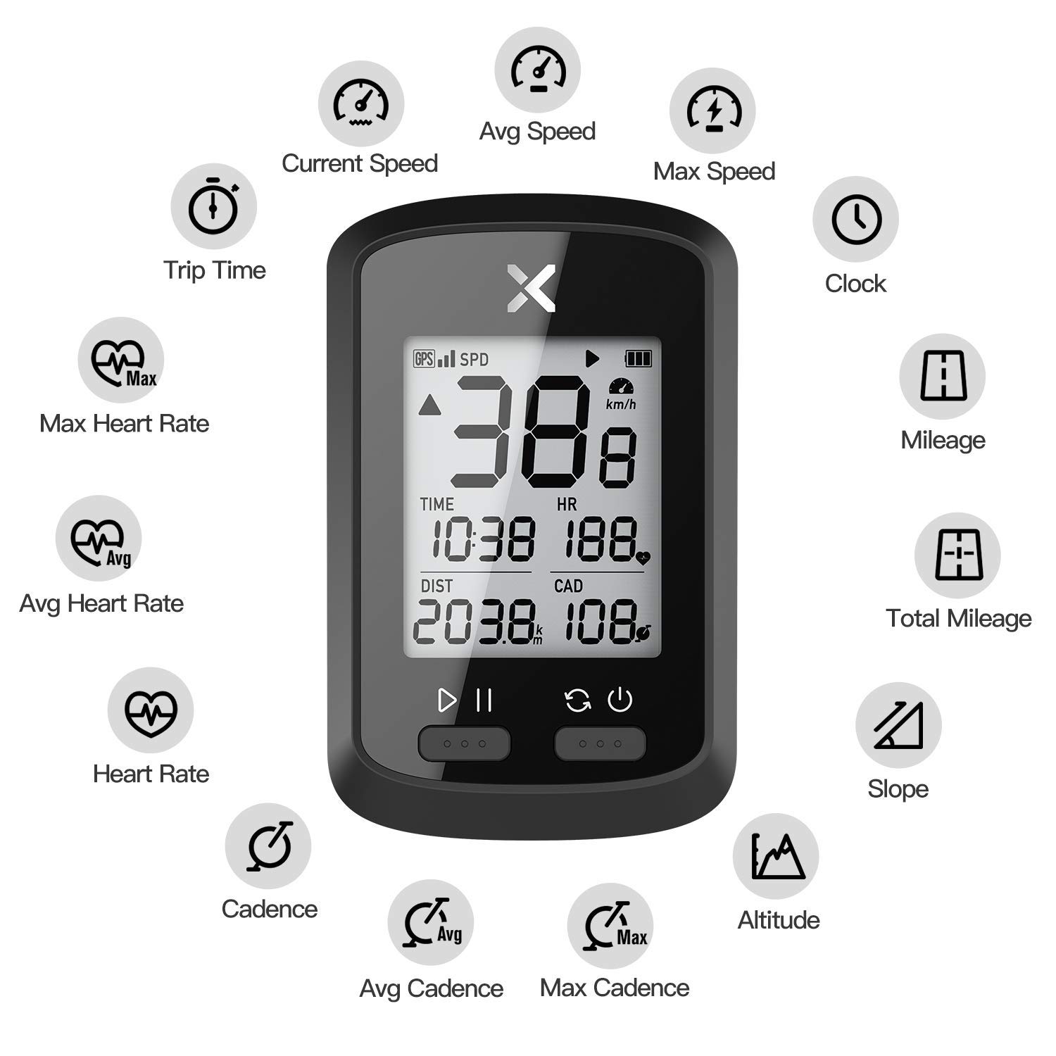 XOSS G+ Bike Computer GPS, Wireless Cycling Computers Bicycle Computer GPS Bike Speedometer, Bluetooth 5.0 & ANT+, IPX7 Waterproof